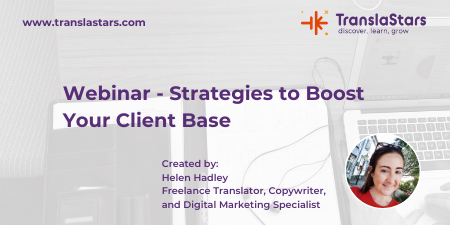 Si quieres profundizar este tema y deseas ampliar tu portfolio de clientes, te recomiendo el webinar, en inglés, creado por Helen Hadley para TranslaStars: Strategies to Boost Your Client Base.